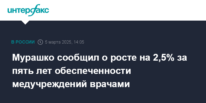 Мурашко сообщил о росте на 2,5% за пять лет обеспеченности медучреждений врачами