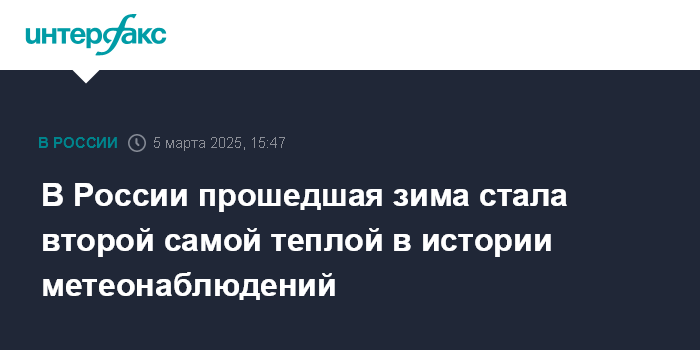 "Средняя температура зимой на всем северном полушарии повторила рекордное достижение, установленное в прошлом году с точностью до 1 десятой градуса. (...) На территории России зима оказалась второй самой теплой в истории наблюдения. (...) Мы берём точку отсчета - 1891 год для всей территории нашей страны. Теплей была только зима 2019-2020 годов", - сказал метеоролог.