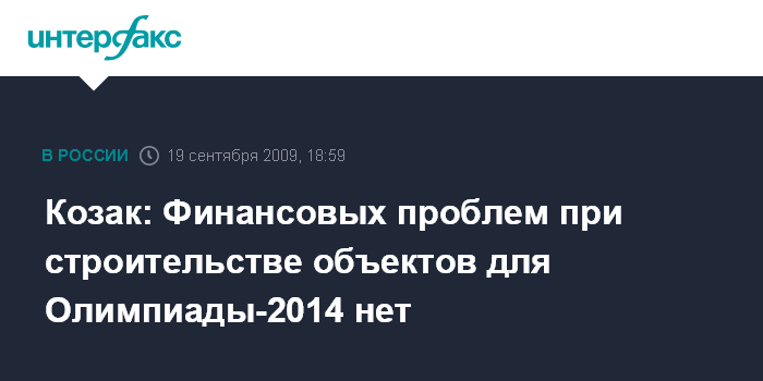 "Финансовых проблем при строительстве олимпийских объектов у нас нет, и все бюджетные средства полностью обеспечены", - приводятся в сообщении слова Д. Козака.