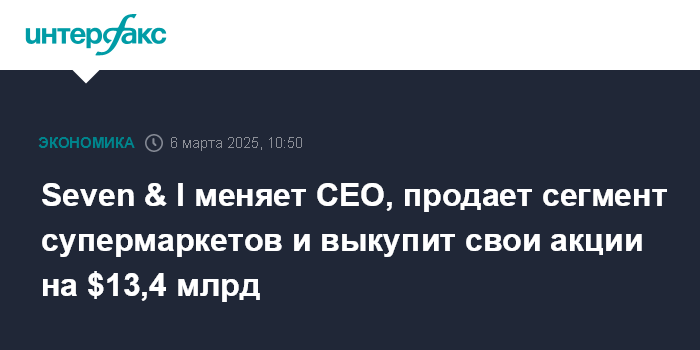 Seven & I меняет CEO, продает сегмент супермаркетов и выкупит свои акции на $13,4 млрд