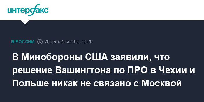 В Минобороны США заявили, что решение Вашингтона по ПРО в Чехии и Польше никак не связано с Москвой