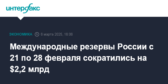 Международные резервы России с 21 по 28 февраля сократились на $2,2 млрд