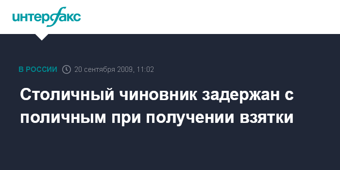 Москва. 20 сентября. ИНТЕРФАКС - Столичный чиновник задержан с поличным при получении взятки от руководителя коммерческой организации.