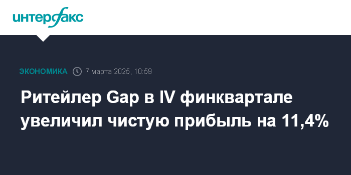 Москва. 7 марта. INTERFAX.RU - Американская Gap Inc., владеющая сетью магазинов одежды, в четвертом квартале 2024 финансового года увеличила чистую прибыль на 11,4%, дала хороший прогноз на год.