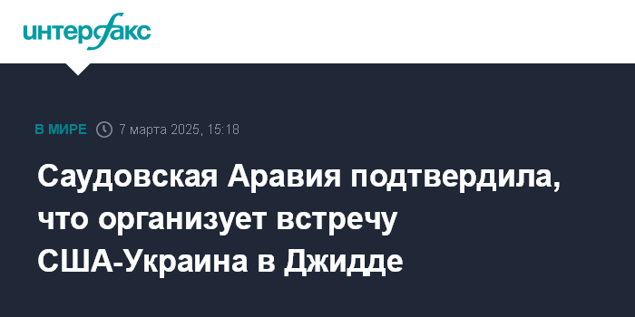 "Министерство иностранных дел от имени Саудовской Аравии приветствует проведение запланированной встречи между США и Украиной", - говорится в сообщении ведомства в социальной сети X.