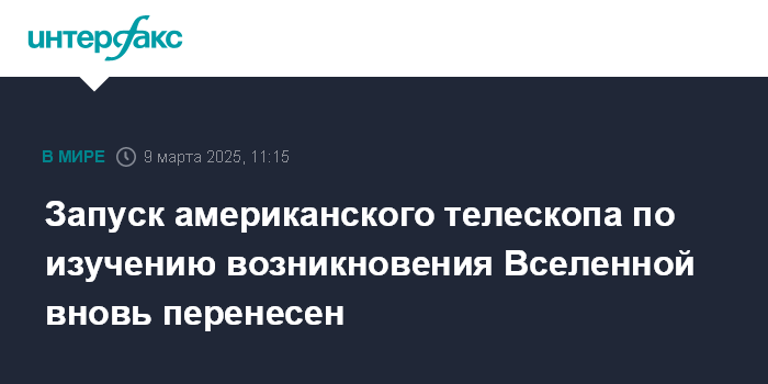 Запуск американского телескопа по изучению возникновения Вселенной вновь перенесен