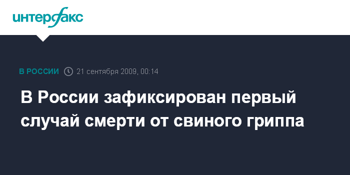 Москва. 21 сентября. ИНТЕРФАКС - Первый случай смерти от свиного гриппа зафиксирован в России, заявил директор Института вирусологии имени Ивановского, академик Российской академии медицинских наук Дмитрий Львов.