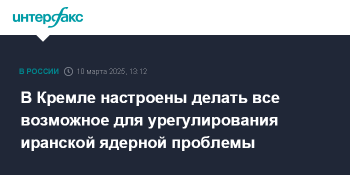 В Кремле настроены делать все возможное для урегулирования иранской ядерной проблемы