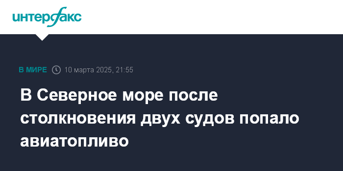 Москва. 10 марта. INTERFAX.RU - Столкновение танкера и контейнеровоза в Северном море привело к серии взрывов, из-за которых в воду попало реактивное топливо из танкера, сообщает Sky News.