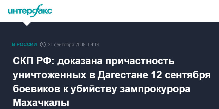 СКП РФ: доказана причастность уничтоженных в Дагестане 12 сентября боевиков к убийству зампрокурора Махачкалы