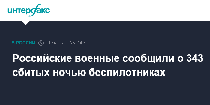 Российские военные сообщили о 343 сбитых ночью беспилотниках