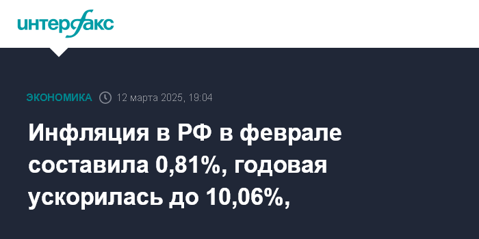 Инфляция в РФ в феврале составила 0,81%, годовая ускорилась до 10,06%,