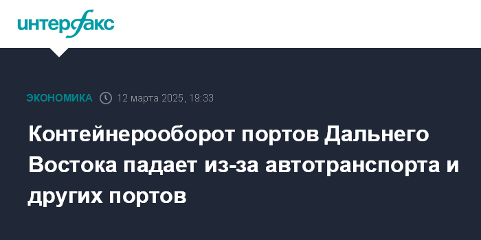 Москва. 12 марта. INTERFAX.RU - Контейнерооборот портов Дальнего Востока в январе сократился в месячном выражении (с сезонной корректировкой) за счет как импорта, так и экспорта, достигнув минимума с марта 2024 года. Об этом говорится в мартовском докладе ЦБ РФ по региональной экономике.
