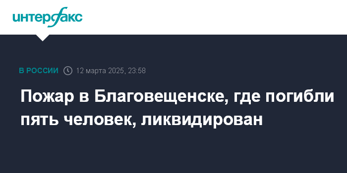 Пожар в Благовещенске, где погибли пять человек, ликвидирован