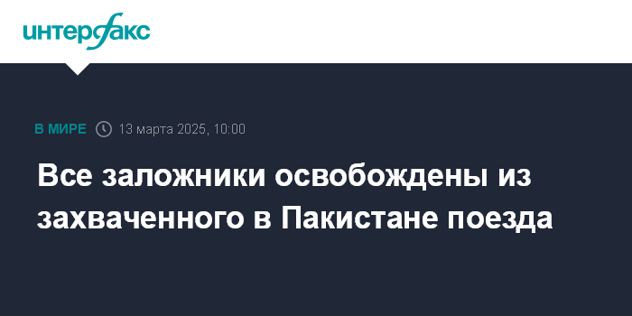 Москва. 13 марта. INTERFAX.RU - Более 400 человек, спасенных на юго-западе Пакистана из поезда, захваченного группировкой "Армия освобождения Белуджистана", прибыли в город Кветта; сотрудники сил безопасности обезвредили всех 33 нападавших, сообщает телеканал "Аль-Арабия" в четверг.