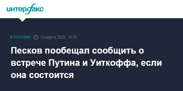 Песков пообещал сообщить о встрече Путина и Уиткоффа, если она состоится