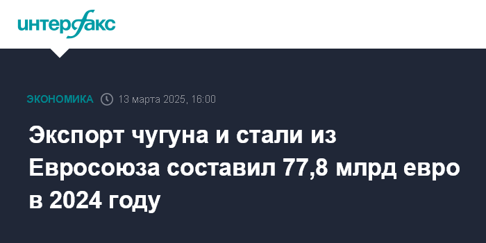 Экспорт чугуна и стали из Евросоюза составил 77,8 млрд евро в 2024 году