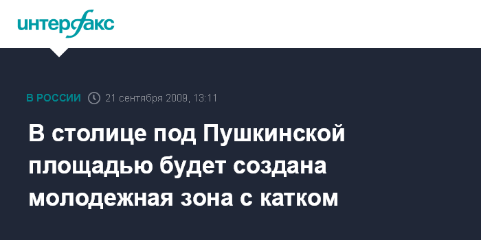 В столице под Пушкинской площадью будет создана молодежная зона с катком