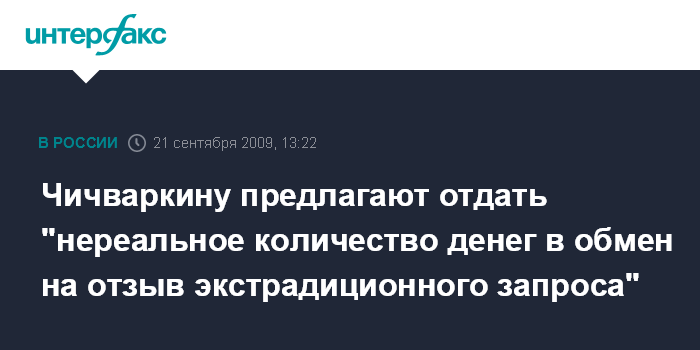 Москва. 21 сентября. INTERFAX.RU - Бывший глава "Евросети" Евгений Чичваркин в интервью The New Times сообщил, что ему из России звонят некие люди, которые предлагают "отдать нереальное количество денег, кратное десяткам миллионов долларов, в обмен на отзыв экстрадиционного запроса и прекращение преследования". Чичваркин также заявил о том, что, если экстрадиция в Россию все-таки состоится, то, его "постараются убить в тюрьме". "А желательно еще по дороге туда, чтобы вообще ни слова больше не сказал", - подчеркнул он.