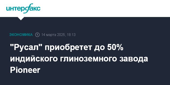 "Русал" приобретет до 50% индийского глиноземного завода Pioneer
