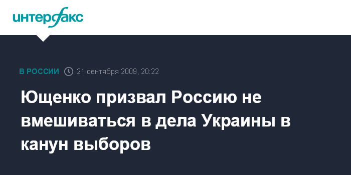 Киев. 21 сентября. INTERFAX.RU - Президент Украины Виктор Ющенко призвал Россию не вмешиваться в украинские дела в канун выборов. Об этом В.Ющенко сказал в интервью агентству Bloomberg накануне поездки в США, сообщила BBC.