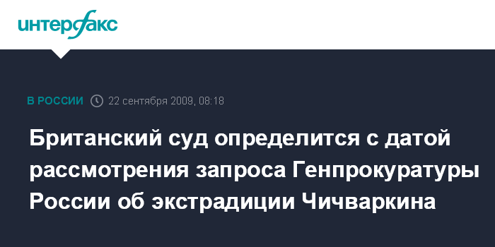 Москва. 22 сентября. INTERFAX.RU - Суд в Великобритании во вторник назначит дату рассмотрения запроса Генпрокуратуры РФ об экстрадиции основателя и бывшего совладельца компании "Евросеть" (РТС: TDEV) Евгения Чичваркина, фигуранта дела о похищении человека и вымогательстве.