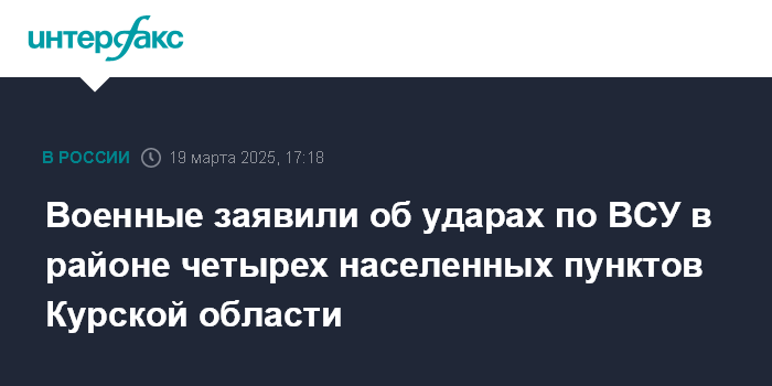 Военные заявили об ударах по ВСУ в районе четырех населенных пунктов Курской области