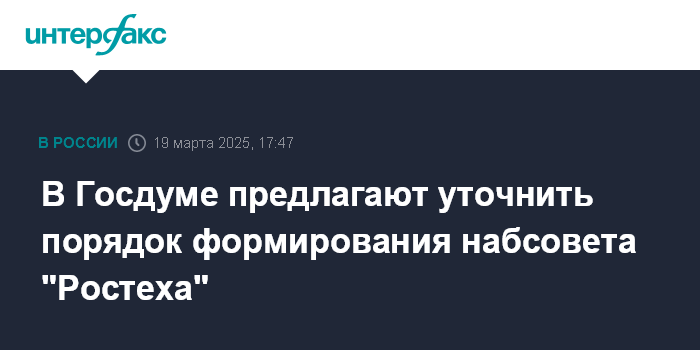 Москва. 19 марта. INTERFAX.RU - Депутаты предлагают изменить порядок формирования наблюдательного совета госкорпорации "Ростех", сделав более гибким присутствие в нем представителей предпринимательского сообщества.