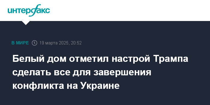 Москва. 19 марта. INTERFAX.RU - Президент США Дональд Трамп намерен содействовать тому, чтобы конфликт на Украине завершился и никогда не повторился вновь.