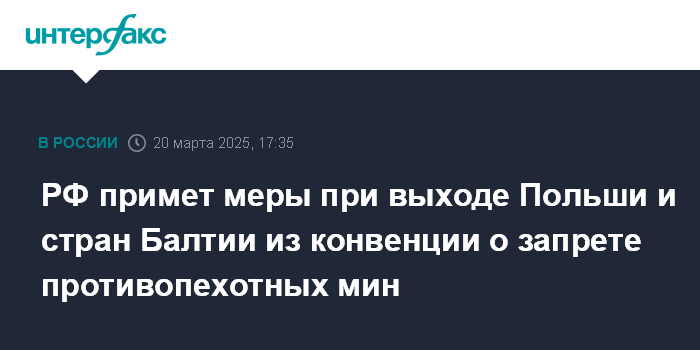 РФ примет меры при выходе Польши и стран Балтии из конвенции о запрете противопехотных мин