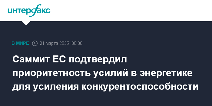 Саммит ЕС подтвердил приоритетность усилий в энергетике для усиления конкурентоспособности