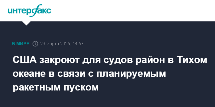 США закроют для судов район в Тихом океане в связи с планируемым ракетным пуском
