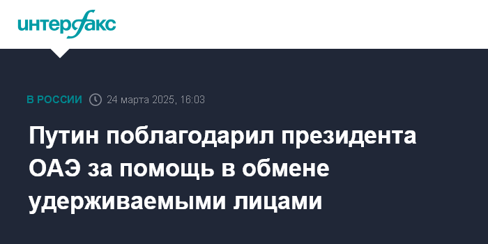 Путин поблагодарил президента ОАЭ за помощь в обмене удерживаемыми лицами