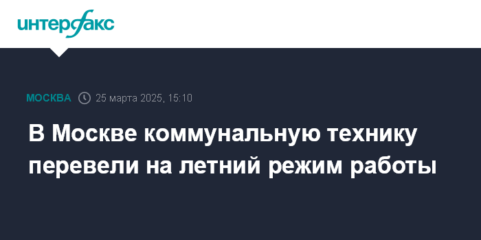 Москва. 25 марта. INTERFAX.RU - В Москве дорожно-уборочную технику перевели на летний режим работы, сообщил журналистам заммэра города по вопросам ЖКХ и благоустройства Петр Бирюков.
