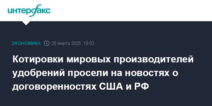 Котировки мировых производителей удобрений просели на новостях о договоренностях США и РФ