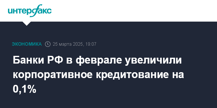 Банки РФ в феврале увеличили корпоративное кредитование на 0,1%