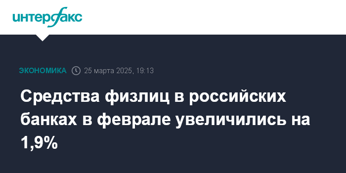 Средства физлиц в российских банках в феврале увеличились на 1,9%