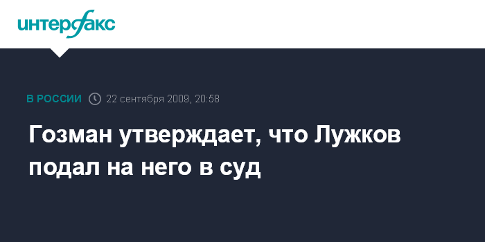 "Интерфакс" пока не располагает информацией со стороны московской мэрии о факте подачи иска, о котором сообщил Гозман.