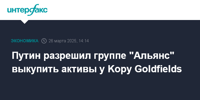 Путин разрешил группе "Альянс" выкупить активы у Kopy Goldfields
