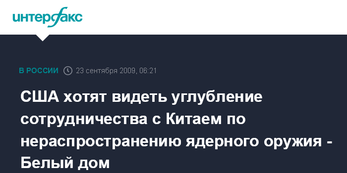 США хотят видеть углубление сотрудничества с Китаем по нераспространению ядерного оружия - Белый дом