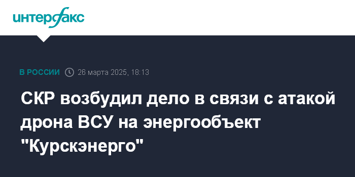 СКР возбудил дело в связи с атакой дрона ВСУ на энергообъект "Курскэнерго"