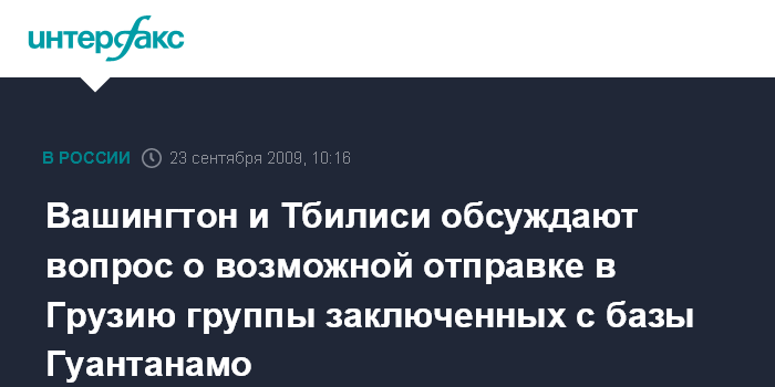 Москва. 23 сентября. INTERFAX.RU - Вопрос о закрытии базы в Гуантанамо и возможной отправке оттуда небольшой части заключенных в Грузию обсуждался в минувший вторник в Вашингтоне на встрече министра иностранных дел Грузии Григола Вашадзе и спецпредставителя госдепартамента США Дениэля Фрида. "Пока не принято конкретного решения о возможной отправке небольшой части заключенных с базы Гуантанамо в Грузию", - сказал Д.Фрид после встречи журналистам грузинских телеканалов. Он отметил, что если согласие будет достигнуто, то в Грузию будут отправлены незначительное количество заключенных, чтобы не нанести никакого ущерба ее безопасности.