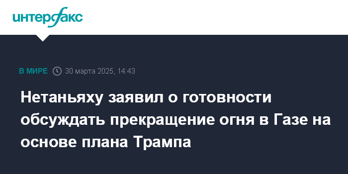 Нетаньяху заявил о готовности обсуждать прекращение огня в Газе на основе плана Трампа