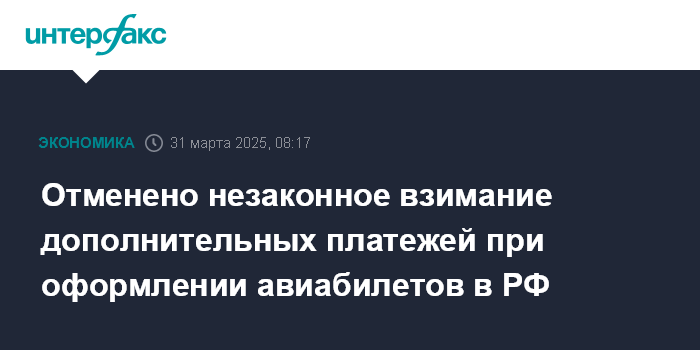 Отменено незаконное взимание дополнительных платежей при оформлении авиабилетов в РФ