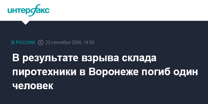 Воронеж. 23 сентября. INTERFAX.RU - При взрыве склада пиротехники в Воронеже погиб один человек, пострадали 22, сообщили "Интерфаксу" в среду в региональном управлении МЧС.