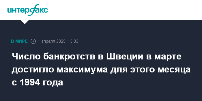 Число банкротств в Швеции в марте достигло максимума для этого месяца с 1994 года