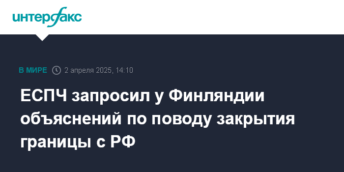 Москва. 2 апреля. INTERFAX.RU - Европейский суд по правам человека (ЕСПЧ) запросил у правительства Финляндии объяснений по поводу закрытия границы с Россией.
