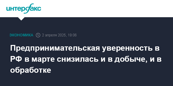 Предпринимательская уверенность в РФ в марте снизилась и в добыче, и в обработке
