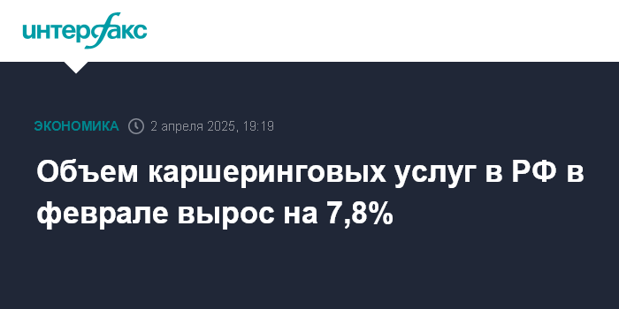 Объем каршеринговых услуг в РФ в феврале вырос на 7,8%