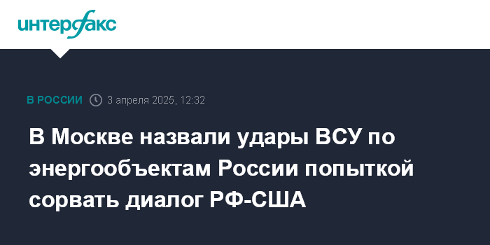 В Москве назвали удары ВСУ по энергообъектам России попыткой сорвать диалог РФ-США